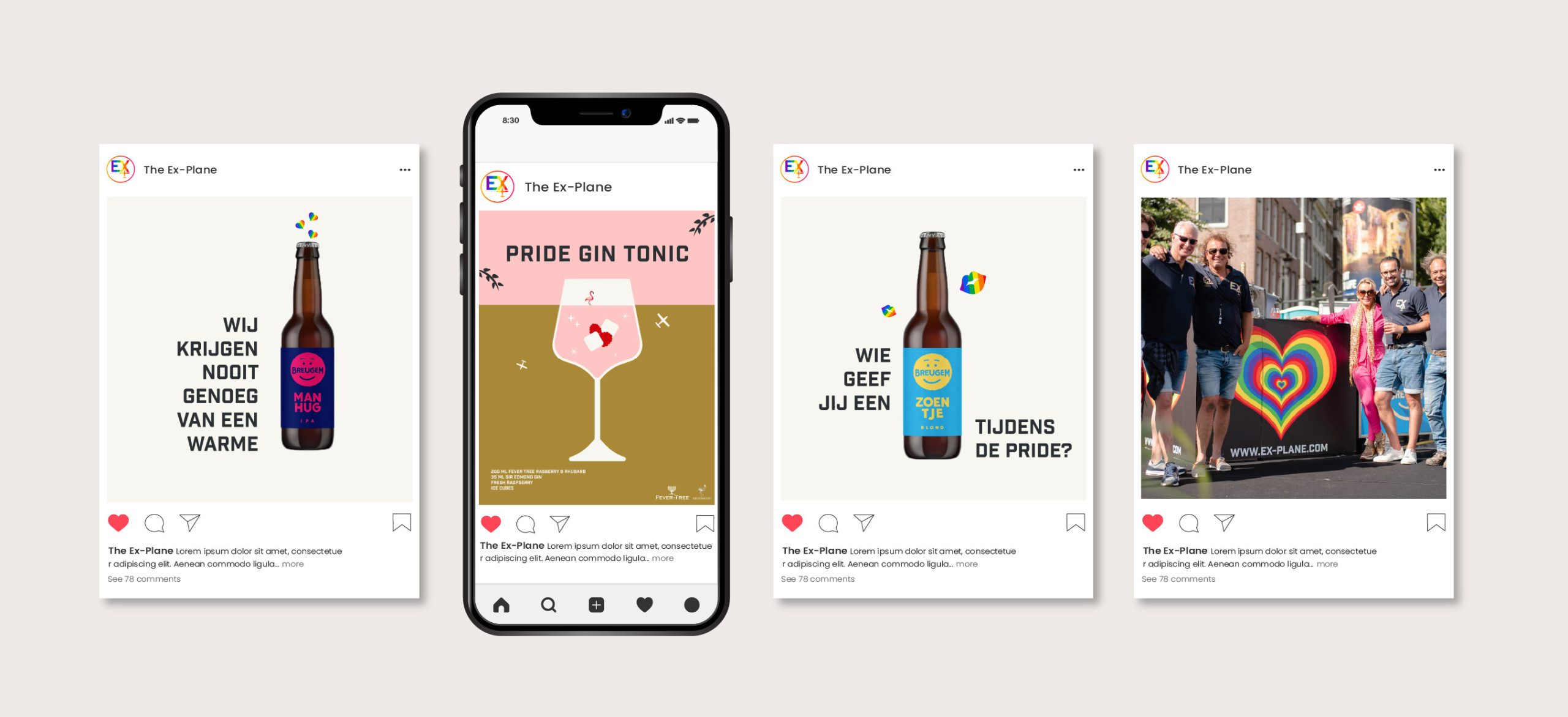 Tijdens de Canal Pride Amsterdam had The Ex-Plane een feestje óp de Amstel naast de Blauwbrug. Voor dit feest maakte ik diverse designs zoals: