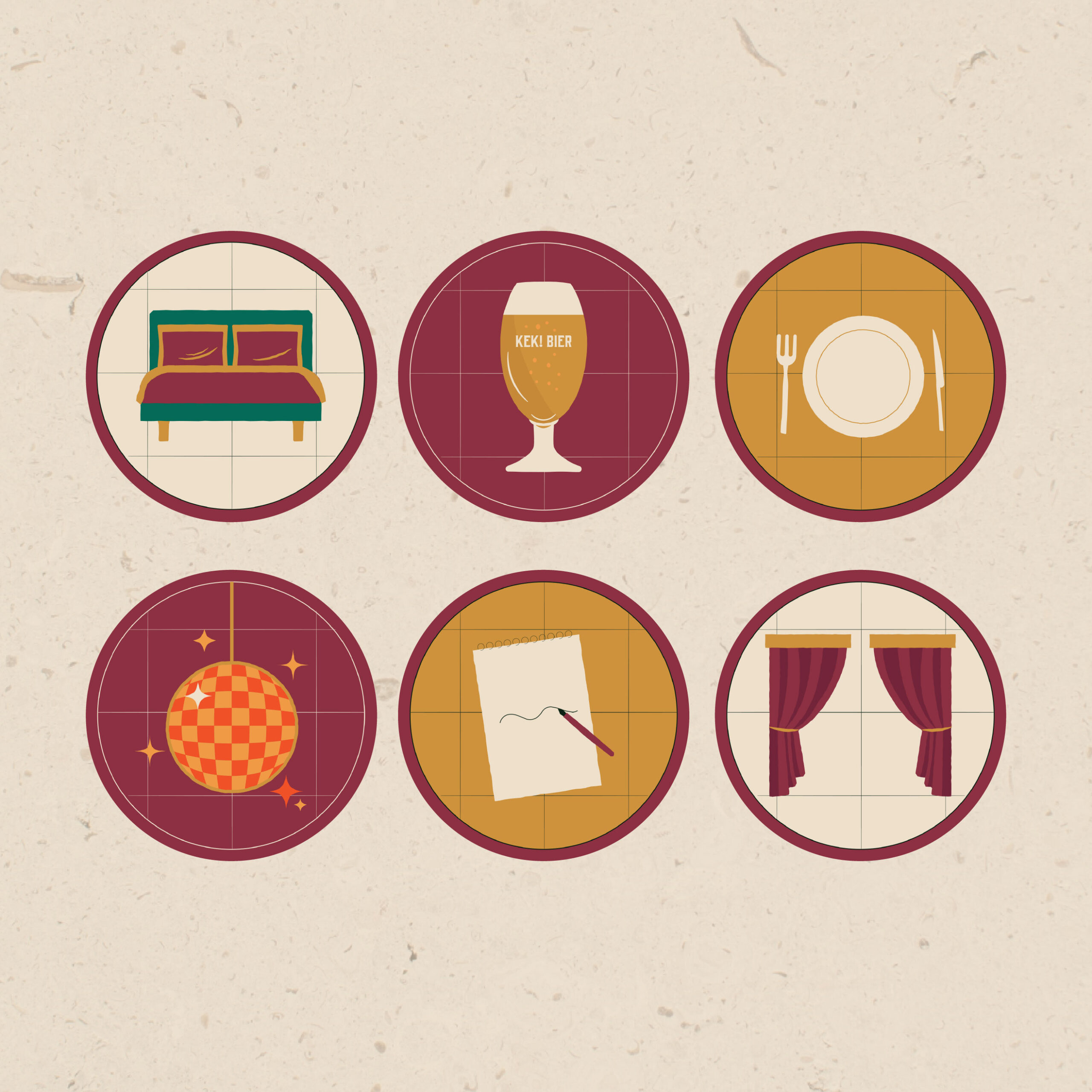 Voor dit prachtige project mocht ik de branding en verschillende uitingen ontwerpen. We kozen voor een stijl die het speelse en rebelse van KEK! combineert met klassieke en nostalgische elementen uit het Gezellenhuis. Organische, natuurlijke vormen verwijzen naar de omgeving, aangevuld met illustraties die passen bij het aanbod én het pand. Alles komt samen in dit kleurrijke, karaktervolle merk.